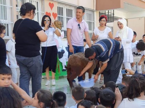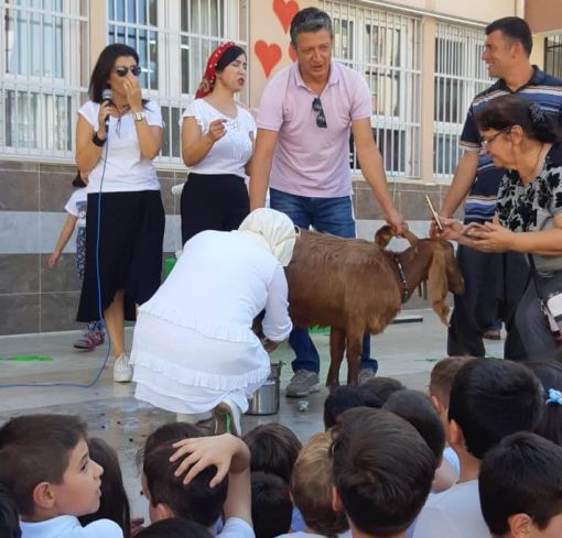 Süt Günü Etkinliğimiz Muhteşemdi... Süt hakkında toplumu ve öğrencilerimizi bilinçlendirmek, süt tüketimini arttırmak, öğrencilerimize sütü sevdirmek amacıyla düzenlediğimiz süt günü etkinliğimiz muhteşemdi...Öğrencilerimizin gazlı ve şekerli içeçeklerden kurtulup süt, ayran, kefir gibi sağlıklı ve doğal içecekleri tercih etmeleri amacıyla düzenlenen etkinliğimiz öğrencilerimizin ve velilerimizin beğenisini topladı. Toplu süt içimi ile başlayan etkinliğimiz, süt sağma yarışması ile devam etti. ![]() Yarışma sonunda sahneye çıkarılan keçi ve yavrusu büyük ilgi gördü ![]() ![]() İlk defa keçi gören öğrencilerimiz heyecanlandı. Annesini emen yavru keçi öğrencilerimiz tarafından alkışlandı. ![]() Okul Müdüremiz Nazife Türkoğlu anne keçiyi sağarak öğrencilerimize süt sağmayı gösterdi. Daha sonra kısa bir konuşma yapan okul müdüremiz; "Yaşı belli bir kemale ermiş nesilleri düzeltmeye çalışmaktansa genç küçük nesilleri doğru yetiştirmek çok daha karlıdır. Biz doğru nesiler sağlıklı nesiller aklı çalışan sorgulama kültürüne sahip nesiller yetiştireceksek sütün önemini tüm ülkemizde bilinçli bir tüketim anlayışımızı en iyi şekilde anlatabilmemiz lazım" diye konuştu. Etkinliğimiz anasınıfı öğrencilerinin gösterileri ve tüm öğrencilerimizin müzik eşliğinde dans etmeleri ile son buldu... |