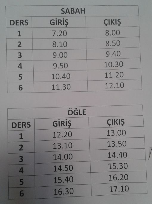 Giriş-Çıkış Saatlerimiz - 11/09/2014 |
