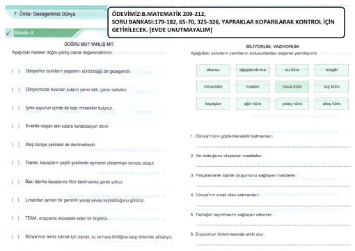 3 / H - Matematik_Hayat_Bil_Fen Bilimleri - Ödev yaprağındaki açıklamalara göre ödevlerinizi ...