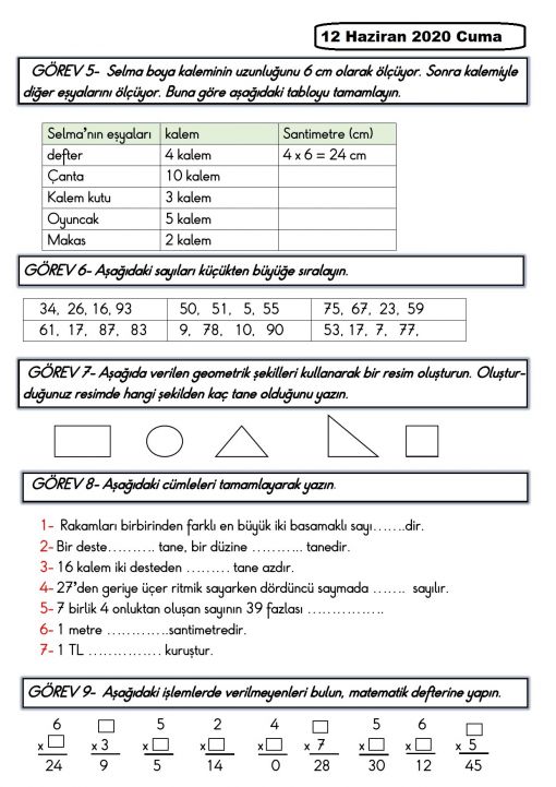 Ödev yaprağındaki açıklamalara göre ödevlerinizi yapınız...