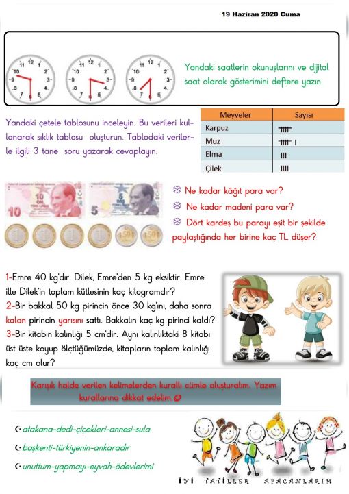 Sevgili Afacanlarım, bugün son ödevimizi yayınladım. Uzaktan eğitim sürecini birlikte el ele vererek atlattık. Eksiklerimizi önümüzdeki yıl tamamlarız. Uzaktan eğitim sürecindeki gayretlerinizi kutlar, başarılarınızın daim olmasını dilerim. Hepinize iyi tatiller, Gözlerinizden öpüyorum...💓 💓 💓