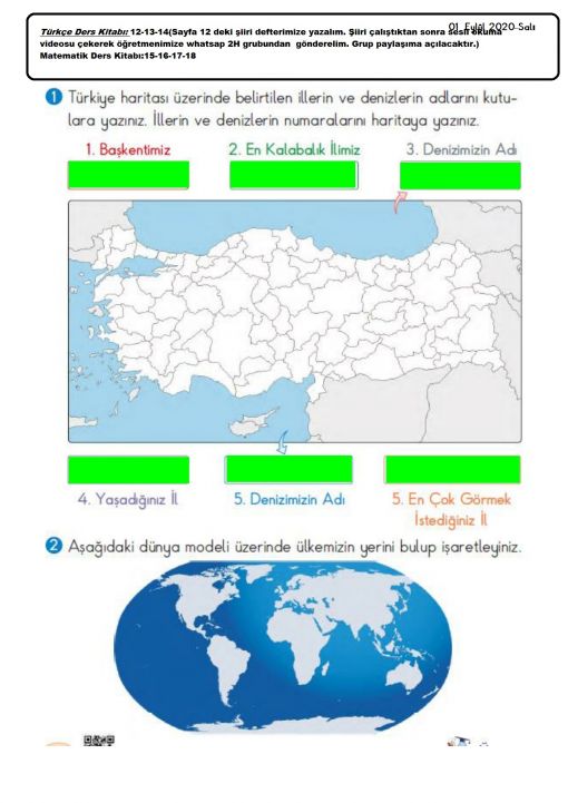 3 / H - Türkçe - Ödevlerimizi bitirince fotoğrafını göndermeyi unutmayın... ...