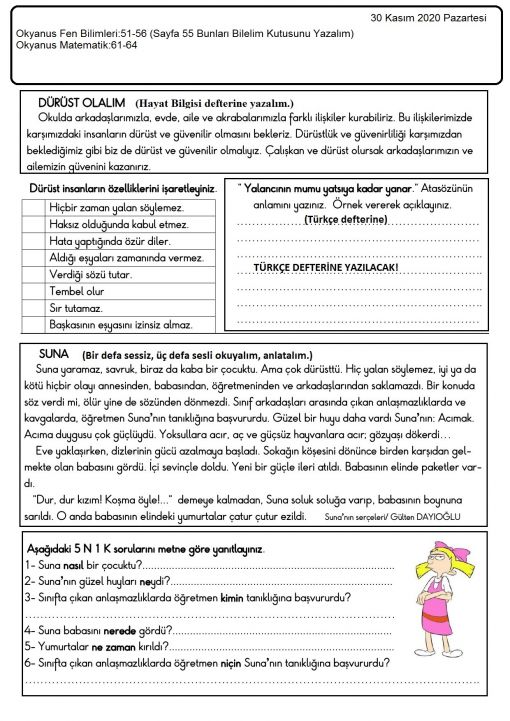 3 / H - Türkçe_Matematik_Hayat_Bil - Ödev yaprağındaki açıklamalara göre ödevlerinizi ...