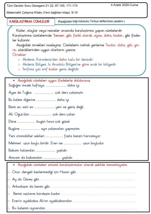 *Yeni dağıtılan matematik çalışma kitabından ödevimiz var...
