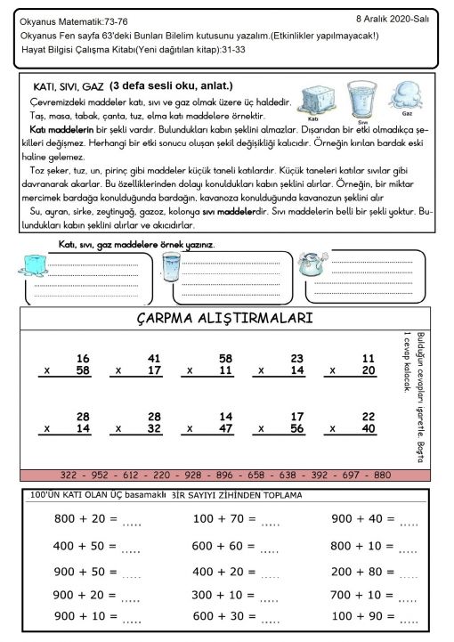 3 / H - 8 Nisan 2021-Perşembe - Okyanus Matematik Okyanus Hayat Bilgisi ...