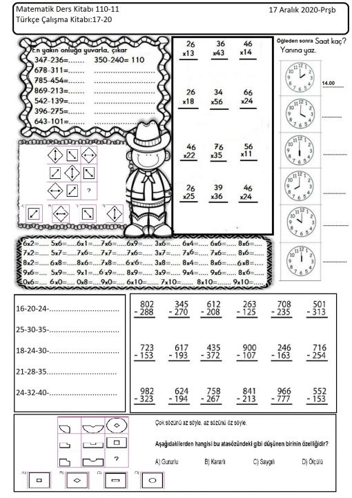 3 / H - 24 Mart 2021-Çarşamba - Türkçe-Matematik Çalışma Kitabı ...