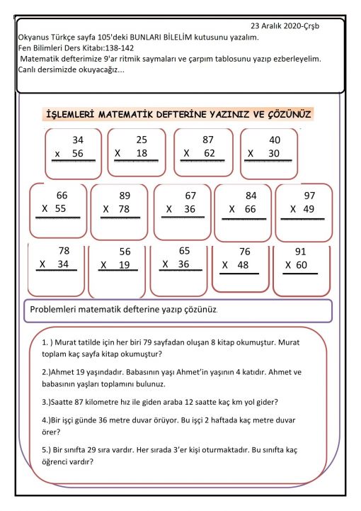3 / H - 7 Nisan 2021-Çarşamba - Okyanus Matematik Okyanus Türkçe ...