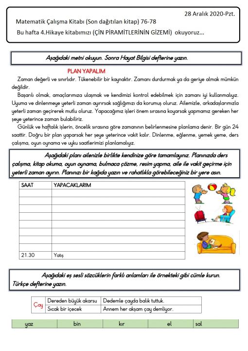 3 / H - 6 Nisan 2021-Salı - Türkçe-Okyanus Matematik-Pekşen (Çalışma Sayfalarım) Hayat Bilgisi(Çalışma ...
