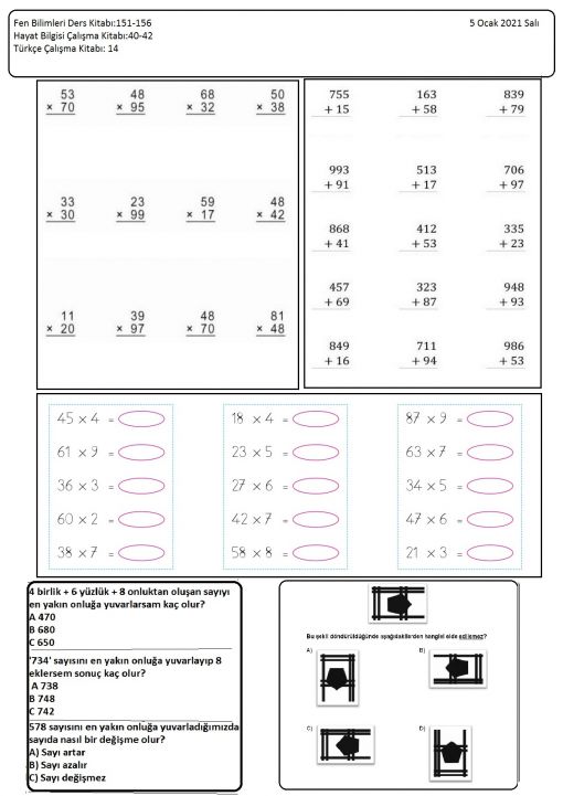 3 / H - 5 Mayıs 2021-Çarşamba - Matematik-Fen-Hayat Bilgisi çalışma kitaplarından ödevlerimiz ...