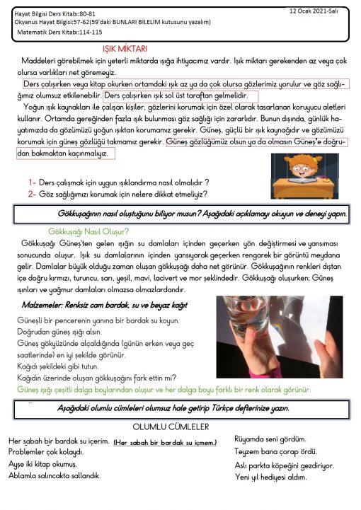3 / H - 31 Mart 2021-Çarşamba - Türkçe-Hayat Bil-Fen Bil ...