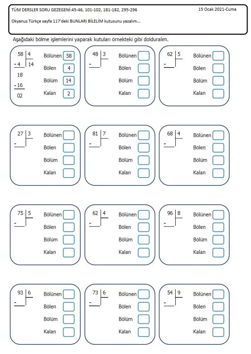 Ödev yaprağındaki açıklamalara göre ödevlerinizi yapınız...