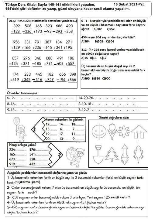 3 / H - 17 Mart 2021-Çarşamba - Matematik-Hayat Bilgisi ...