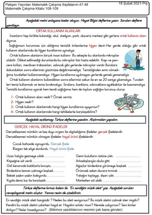3 / H - 17 Mart 2021-Çarşamba - Matematik-Hayat Bilgisi ...