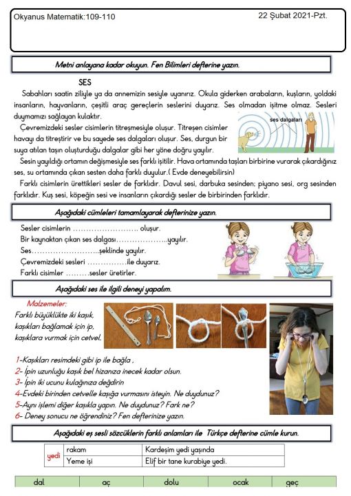 3 / H - 6 Nisan 2021-Salı - Türkçe-Okyanus Matematik-Pekşen (Çalışma Sayfalarım) Hayat Bilgisi(Çalışma ...