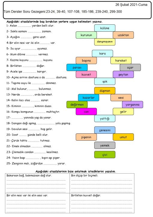 3 / H - 21 Nisan 2021-Çarşamba - Ödev yaprağındaki açıklamalara göre yapınz... ...