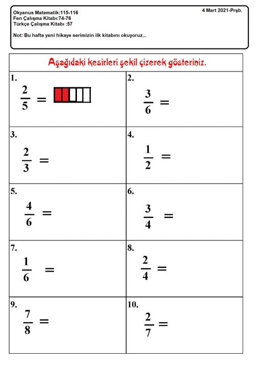 3 / H - 18 Mart 2021-Perşembe - Ödev yapraklarındaki açıklamalara göre yapınız... ...