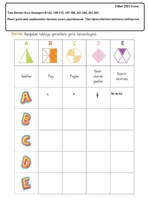 3 / H - 25 Mart 2021-Perşembe - Matematik-Hayat Bilgisi ...