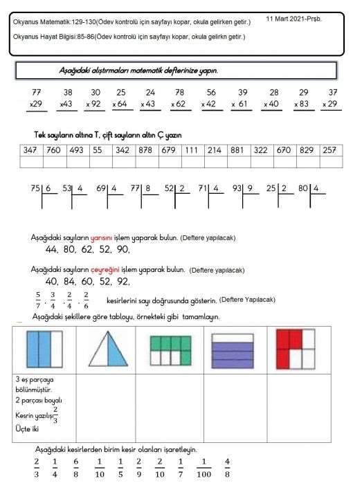 3 / H - 17 Mart 2021-Çarşamba - Matematik-Hayat Bilgisi ...