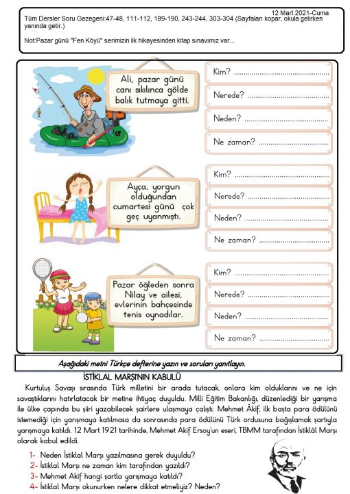 3 / H - 2 Nisan 2021-Cuma - Pazar günü kitap sınavımız var. ...