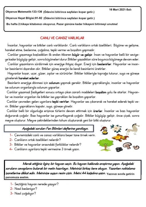 3 / H - 31 Mart 2021-Çarşamba - Türkçe-Hayat Bil-Fen Bil ...