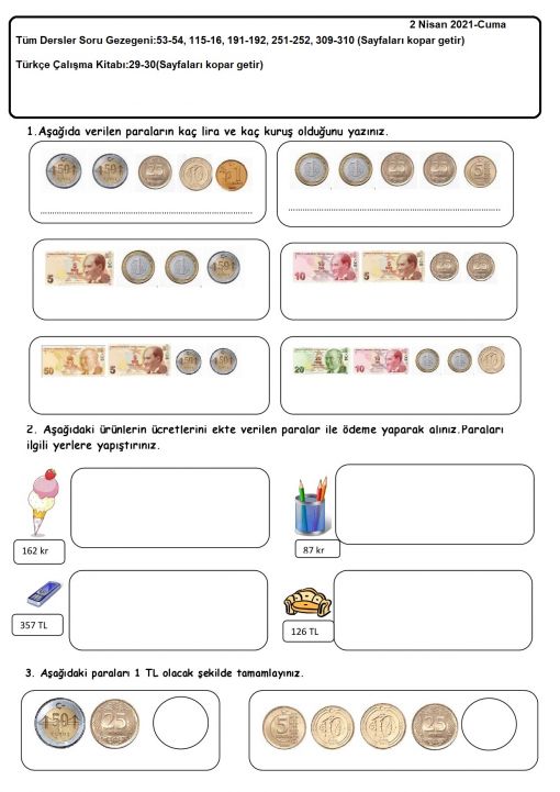 3 / H - 2 Nisan 2021-Cuma - Pazar günü kitap sınavımız var. ...