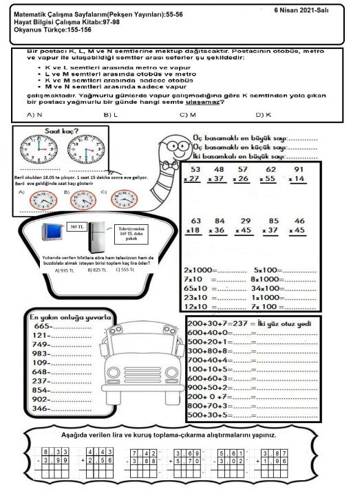 3 / H - 8 Nisan 2021-Perşembe - Okyanus Matematik Okyanus Hayat Bilgisi ...