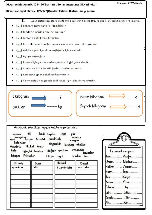 3 / H - 8 Nisan 2021-Perşembe - Okyanus Matematik Okyanus Hayat Bilgisi ...