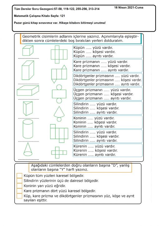 3 / H - 16 Nisan 2021-Cuma - Pazar günü kitap sınavımız var! ...