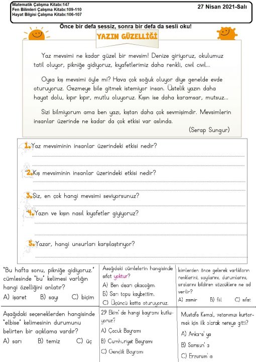 3 / H - 30 Nisan 2021-Cuma - Pazar günü kitap sınavımız var. ...