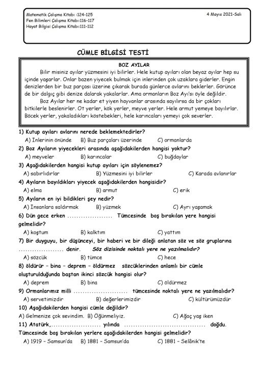 3 / H - 7 Mayıs 2021-Cuma - Pazar günü kitap sınavımız var. ...