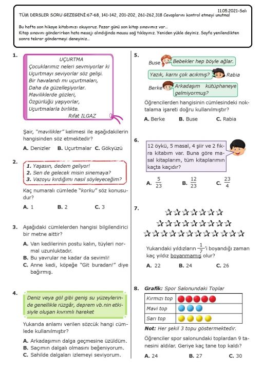 3 / H - 17 Mayıs 2021-Pzt. - Kitap sınavına ve deneme sınavına ...