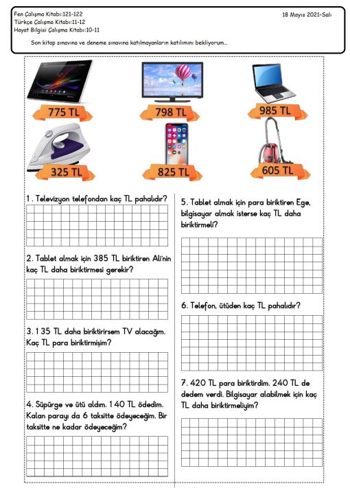 3 / H - 25 Mayıs 2021-Salı - Türkçe-Matematik-Hayat Bilgisi çalışma kitaplarından ödevimiz ...