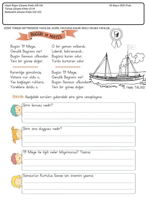 3 / H - 20 Mayıs 2021-Prşb - Türkçe-Matematik-Hayat Bilgisi çalışma kitaplarından ödevimiz ...