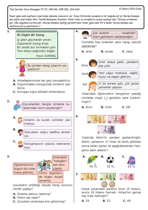 3 / H - 28 Mayıs 2021-Cuma - Pazar günü deneme-13 sınavımıza katılmayı ...