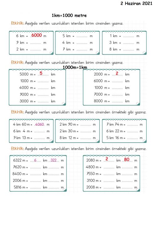 3 / H - 11 Haziran 2021-Cuma - Ödev yaprağındaki açıklamalara göre ödevlerinizi ...