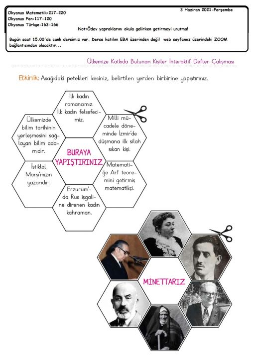 3 / H - 10 Haziran 2021-Perşembe - Ödev yaprağındaki açıklamalara göre ödevlerinizi ...