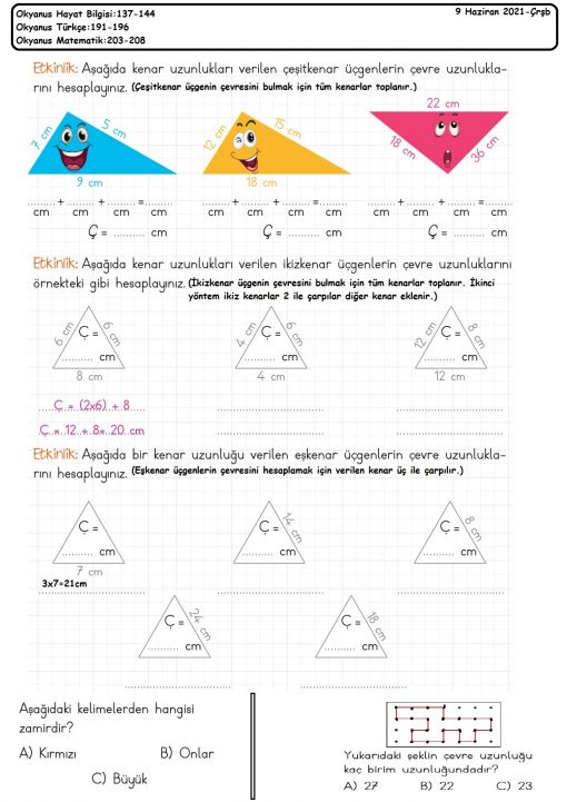 3 / H - 16 Haziran 2021-Çarşamba - Okyanus matematik ...