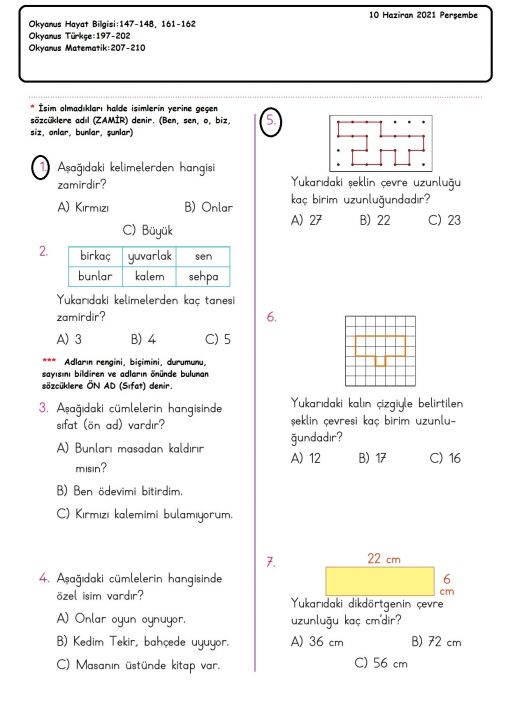 3 / H - 25 Haziran 2021-Cuma - Türkçe-Matematik-Hayat Bilgisi ...
