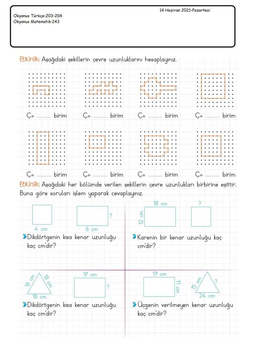 3 / H - 14 Haziran 2021-Pazartesi - Türkçe-Matematik ...