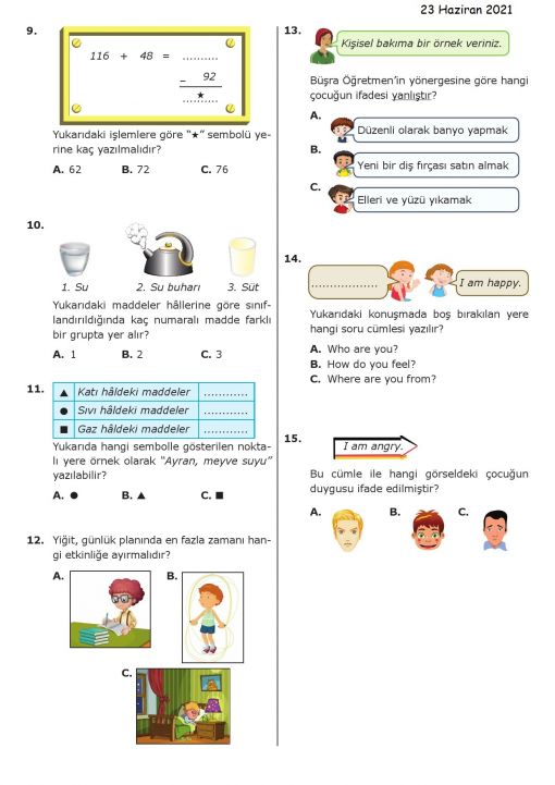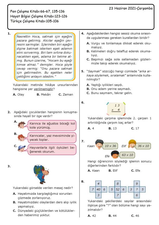 3 / H - 25 Haziran 2021-Cuma - Türkçe-Matematik-Hayat Bilgisi ...